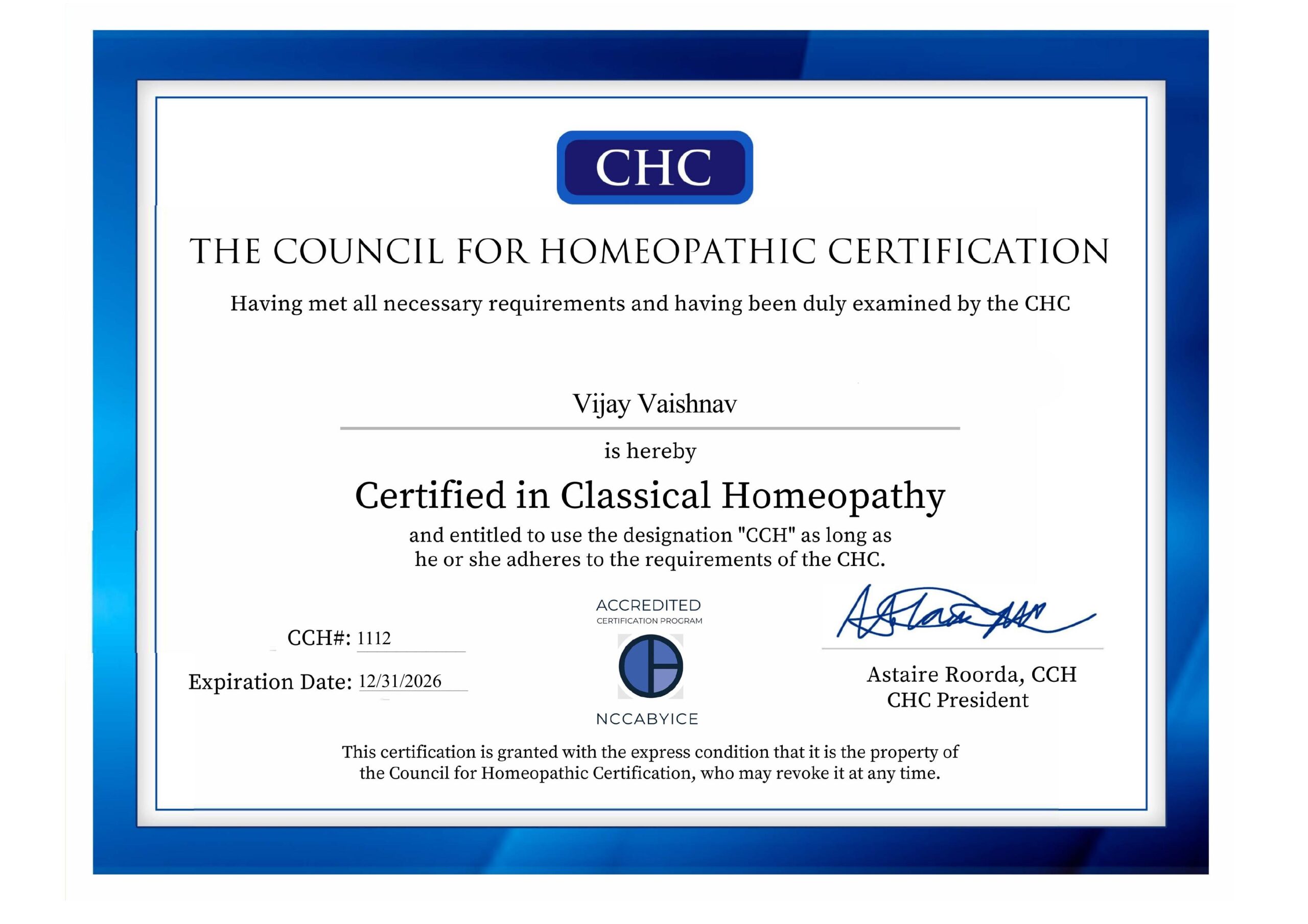 Vijay Vaishnav, M.D. (Hom.), CCH (USA)
